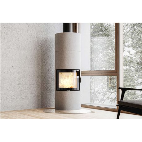 Akumulační krbová kamna pro nízkoenergetický rodinný dům – Salzburg R od značky Nordpeis. Fungují na principu ukládání tepla do speciálního materiálu PowerStone, teplo se postupně uvolňuje po dobu až 20 hodin po ukončení topení.