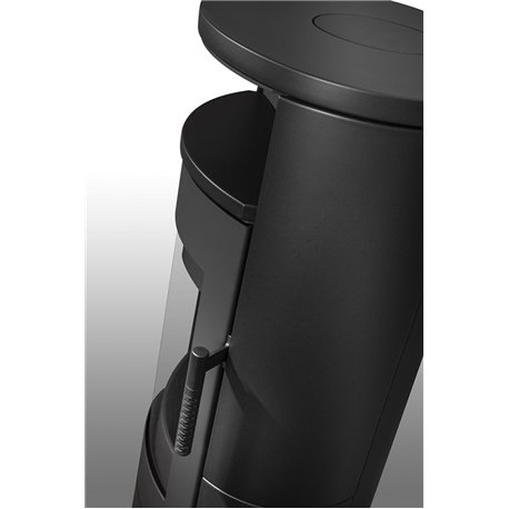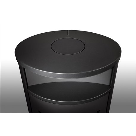 Oválný tvar krbových kamen LUGO N působí v interiéru útulným dojmem. Příjemnými detaily jsou například odkládací parapet nad ohništěm nebo klika dvířek, která svým technickým řešením i designem dává krbovým kamnům elegantní vzhled.