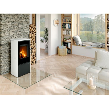 Krbová kamna jsou vhodná pro nízkoenergetické domy. Dvířka kamen mají designově potištěné velkoplošné prosklení. Disponují systémem CPV – centrální přívod externího vzduchu. Ve standardu je možné zapojení horního nebo zadního odvodu spalin. Díky sekundárnímu přívodu vzduchu je sklo dvířek omýváno, a tak nedochází k usazování nečistot. Spalovací komora je vyložena šamotovými tvarovkami. Regulaci primárního a sekundárního přívodu vzduchu lze řídit jediným ovládacím prvkem. Ve spodní části kamen je uzavíratelný dřevník, který umožnuje uskladnění menší zásoby dřeva nebo krbového nářadí. Design umocňují celoskleněná dvířka kamen.