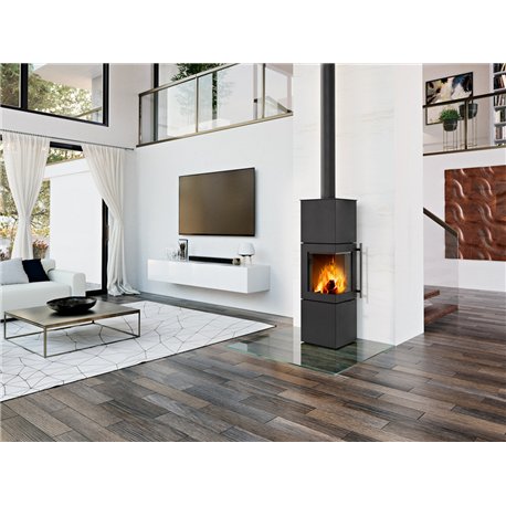 Akumulační krbová kamna ESQUINA H zaujmou kompaktními rozměry, čistými liniemi a výrazným rohovým prosklením, které nabízí působivý pohled na oheň z více úhlů. Skvěle zapadnou do moderních interiérů a přinesou stylové i funkční řešení vytápění.