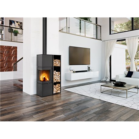 Díky možnosti napojení na centrální přívod vzduchu (CPV) z exteriéru jsou kamna vhodná pro použití v nízkoenergetických domech. Perforované designové madlo zůstává i během provozu příjemně chladné. Dvířka spalovací komory lze bezpečně aretovat v otevřené poloze, což usnadňuje přikládání. Kouřovod je možné napojit shora nebo zezadu podle konkrétní dispozice interiéru. Sekundární vzduch zajišťuje oplach skla, čímž brání usazování nečistot a poskytuje nerušený výhled na plameny. Spalovací komora je vyložena materiálem IGNITON, který je odolný vůči extrémním teplotám a zároveň přispívá k akumulaci tepla. Přesné řízení přívodu primárního i sekundárního vzduchu je řešeno jediným ovládacím prvkem, který zjednodušuje obsluhu. Pro zvýšení tepelného komfortu je možné kamna doplnit o akumulační prvky. Tyto speciální tvarovky se instalují nad spalovací komoru, kde během provozu akumulují tepelnou energii a následně ji postupně uvolňují do prostoru.
