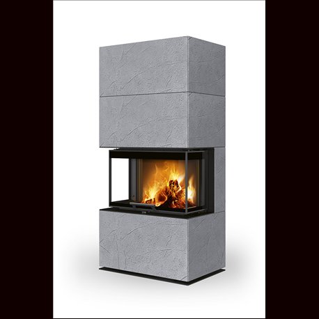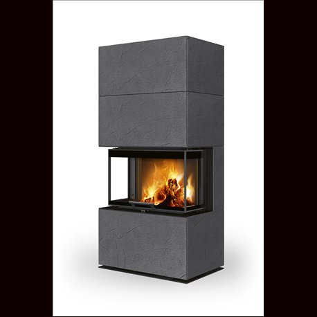 Krby řady CARA jsou obloženy velkoplošným přírodním kamenem nebo povrchově upraveným plechem. Odstínění zadního pláště je umožňuje umístit přímo ke stěně.