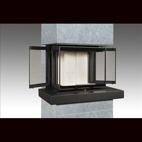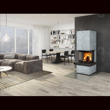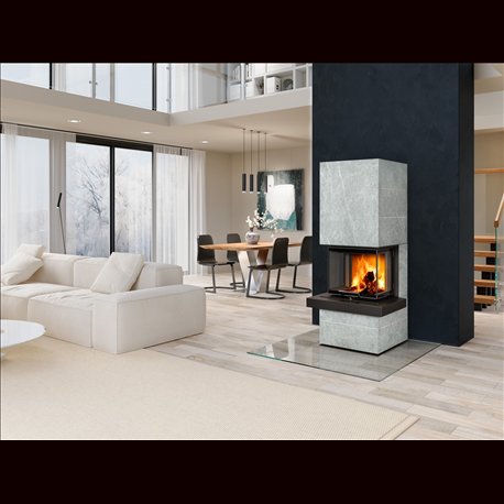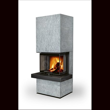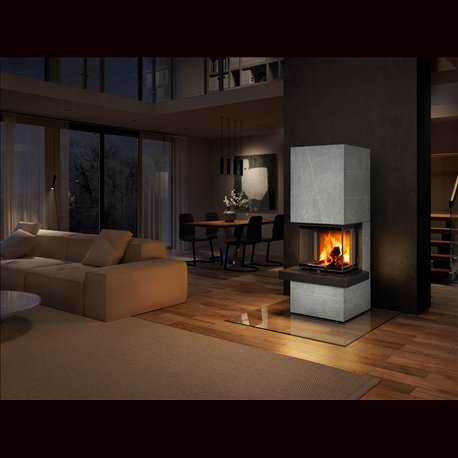 Krby řady CARA jsou obloženy velkoplošným přírodním kamenem nebo povrchově upraveným plechem. Odstínění zadního pláště je umožňuje umístit přímo ke stěně.