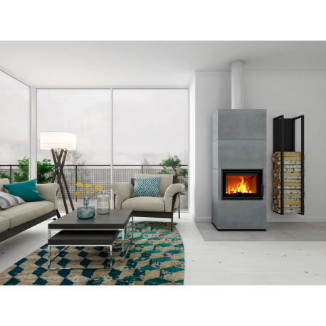 Keramický obklad je na všech čtyřech stranách. V nabídce jsou tři typy kachlových krbů, a to s rovným topeništěm nebo s rohovým levým a pravým. Spalovací komora je vyložena šamotovými tvarovkami, ve standardním provedení s roštem s možností změny na variantu bez roštu. Inovativní systém vedení spalin DOUBLE SPIN zvyšuje celkovou účinnost krbu. Výstup spalin je standardně možný horním nebo zadním odvodem. Díky sekundárnímu přívodu vzduchu na vnitřní plochu skla dvířek se účinně zabraňuje usazování nečistot. Čistému pohledu na oheň tak nic nebrání. Regulace primárního a sekundárního přívodu vzduchu se řídí jediným ovládacím prvkem.